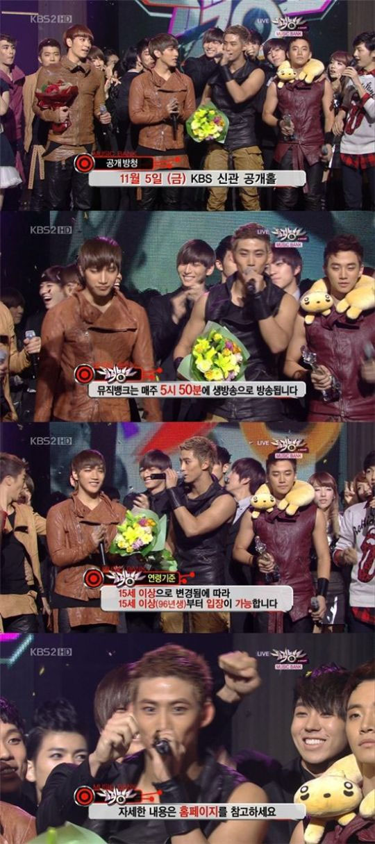 อนึ่ง ‘Music Bank’ วันนี้มีศิลปินเข้าร่วมประกอบไปด้วย SORI, Outsider, Eru, Nine Muses, NS YoonJi, Chae Dong Ha, TOUCH, U-Kiss, Rainbow, Ga In, SG Wannabe, miss A, BEAST, Se7en, Norazo, Psy, SHINee, 2AM, 2PM และ โซนยอชิแด (So Nyeo Shi Dae)
