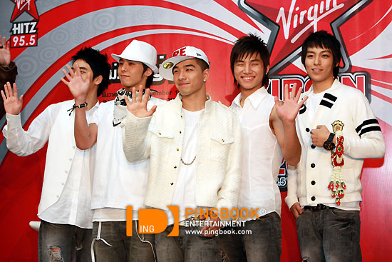 วานนี้ (1 ธันวาคม 2550) เวลาประมาณ 16.00 น. เป็นต้นไป 5 หนุ่มบิ๊กแบง ลัดฟ้าจากเกาหลีร่วมงานประกาศผลรางวัลคนดนตรีครั้งใหญ่ที่สุดแห่งปี Virgin Hitz Award 2007 ซึ่งงานนี้ก่อนเริ่ม 5 หนุ่มเรปเปอร์ชื่อดังจากเกาหลีก็ออกมาให้สัมภาษณ์กับสื่อมวลชนก่อนที่จะนำพาเหล่าสาวก V.I.P ไปชม LIVE กันสดๆ ติดกันถึง 3 เพลงรวดกันเลยทีเดียว !!