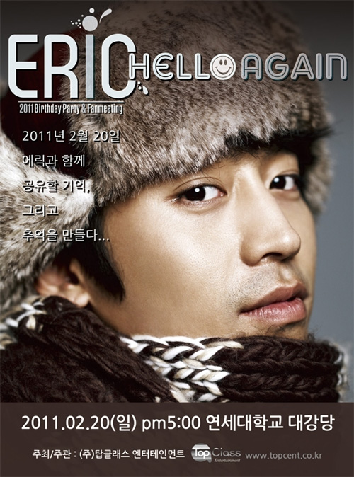 หลังจากที่ เอริค ออกจากกรมเขาก็ได้เปิดเผยว่าเขาจะจัดงานแฟนมีทติ้งขึ้นเพื่อตอบแทนแฟนคลับเกาหลีที่เฝ้ารอเขาในช่วงเวลาที่ผ่านมา โดยในทันทีที่บัตรเริ่มจำหน่ายเมื่อวันที่ 20 มกราคมที่ผ่านมา จากความสนใจอย่างร้อนแรงของแฟนๆก็ถึงกับทำให้เว็บไซต์ติดขัด และหลังจากนั้นเพียง 10 นาที บัตรทั้งหมดกว่า 1,700 ใบก็ถูกจำหน่ายหมดลง เรียกได้ว่าตลอดระยะเวลากว่า 2 ปีที่เขาห่างหายไปนั้น ความรักของแฟนๆไม่ได้ลดน้อยลงไปเลยแม้แต่น้อย
