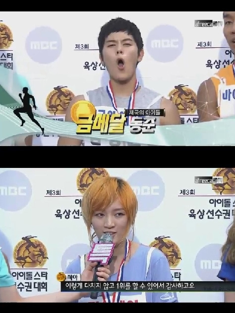 ดงจุน (ZE:A), เจีย (miss A) คว้าแช้มป์วิ่งกระโดดข้ามรั้ว ชาย-หญิง ใน MBC ‘Idol Star Sports Championship ครั้งที่ 3’ (2011-09-13)
