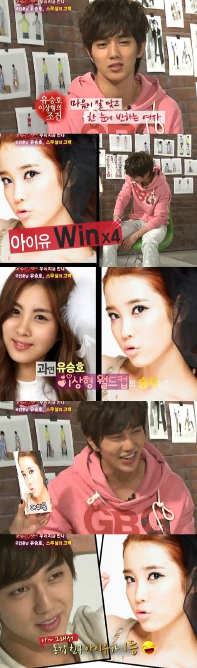 นับตั้งแต่นั้นไม่ว่าไอยูจะต้องแข่งขันกับคนบันเทิงสาวคนใด ยูซึงโฮ ก็เลือกแต่เพียงไอยูเท่านั้น ไอยูต้องเจอกับไอดอลอย่าง ซอลลี่ คริสตัล f(x), จียอน (T-ARA), ซอฮยอน (SNSD) สุดท้ายไอยูก็กลายเป็นผู้ชนะในเกมเวิลด์คัพสาวในอุดมคติ