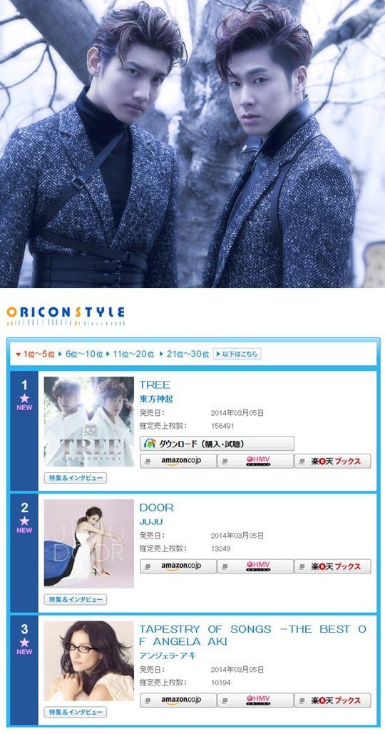 ดงบังชินกิ (TVXQ!) อัลบั้มญี่ปุ่น ‘TREE’ คว้า No.1 ออริกอนยอดวันแรก 1.6 แสน (2014-03-06)