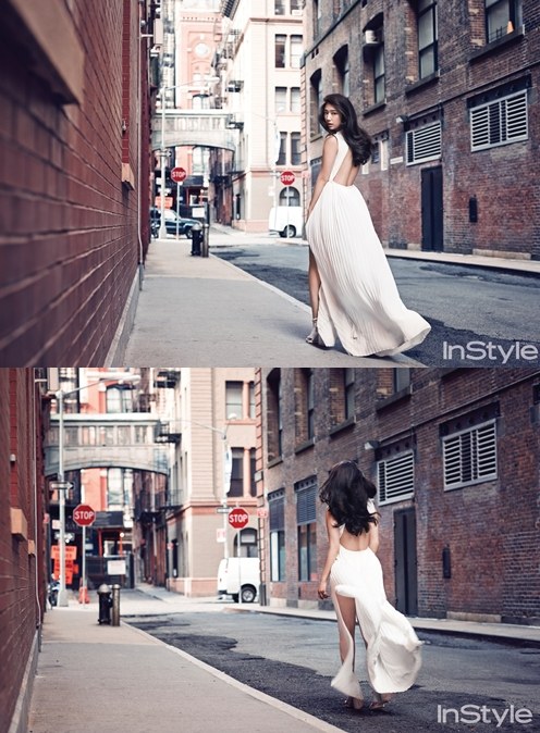 พัคชินเฮ (Park Shin Hye) โชว์แผ่นหลังบนถนนนิวยอร์ค ใน InStyle (2014-05-20)
