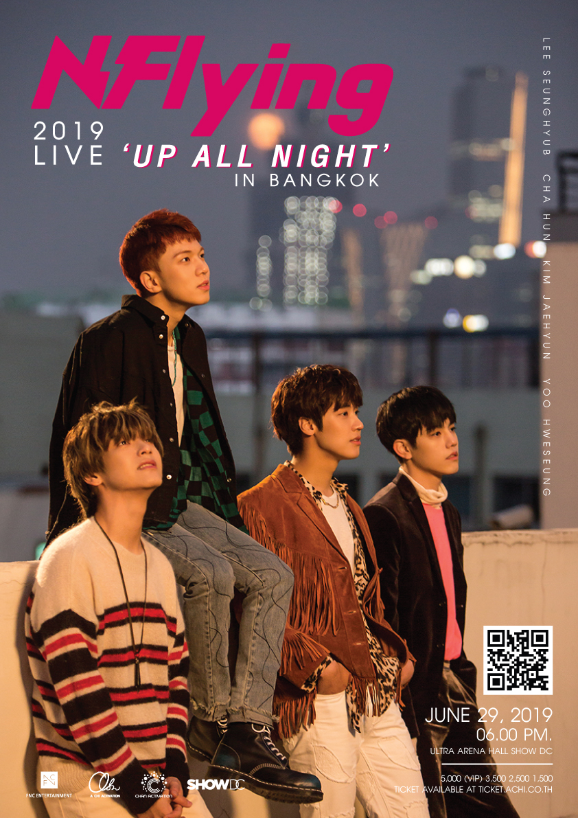 สำหรับเอ็นเฟียชาวไทย ถ้าอยากจะฟิน อยากอินพร้อมร่วมยินดีไปกับบทเพลงที่ประสบความสำเร็จนี้… ไม่ต้องบินไปถึงเกาหลี รออยู่ที่นี่ก็จะได้พบ “เอ็น.ฟลายอิ้ง” อย่างสมใจ ใน “2019 เอ็น.ฟลายอิ้ง ไลฟ์ ‘อัพ ออล ไนท์’ อิน แบงคอก” (2019 N.Flying Live ‘Up All Night’ in Bangkok) วันเสาร์ที่ 29 มิถุนายน 2562 เวลา 18.00 น. ณ อัลตร้า อารีน่า ชั้น 6 ศูนย์การค้าโชว์ ดีซี ตั้งบันทึกกันไว้เลยดีเดย์เริ่มจำหน่ายบัตร วันเสาร์ที่ 11 พฤษภาคม 2562 นี้ ทาง https://ticket.achi.co.th บัตรราคา 5,000 / 3,500 / 2,000 และ 1,500 บาท และถ้าอยากได้รายละเอียดเพิ่มเติมหรืออัพเดทข้อมูลติดตามได้ทาง https://ticket.achi.co.th , Facebook : ACHIACTIVATION, Twitter : @achiactivation , Instagram : ACHI_ACTIVATION , Line @ACHI_ACITIVATION … มาขอนัดบอกกันล่วงหน้าให้เตรียมตัวขนาดนี้ “เด็กบิน” อย่าลืมมากันเยอะๆนะเพราะหนุ่มๆเขาอยากเจอเหมือนกัน!!!
